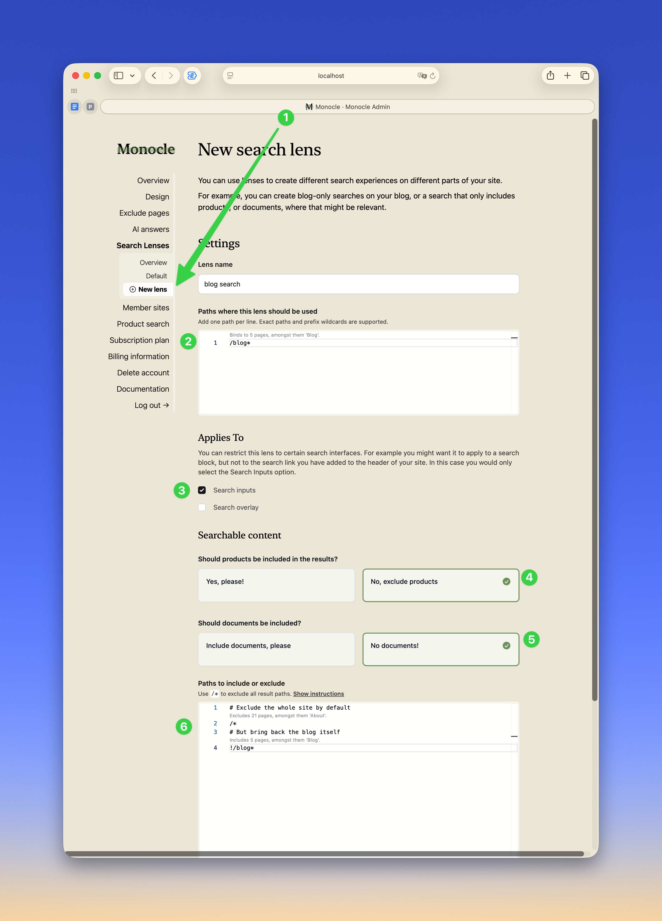 Paths where this lens should be usedto/blog*so the lens applies on the blog and its subpages. - Leave